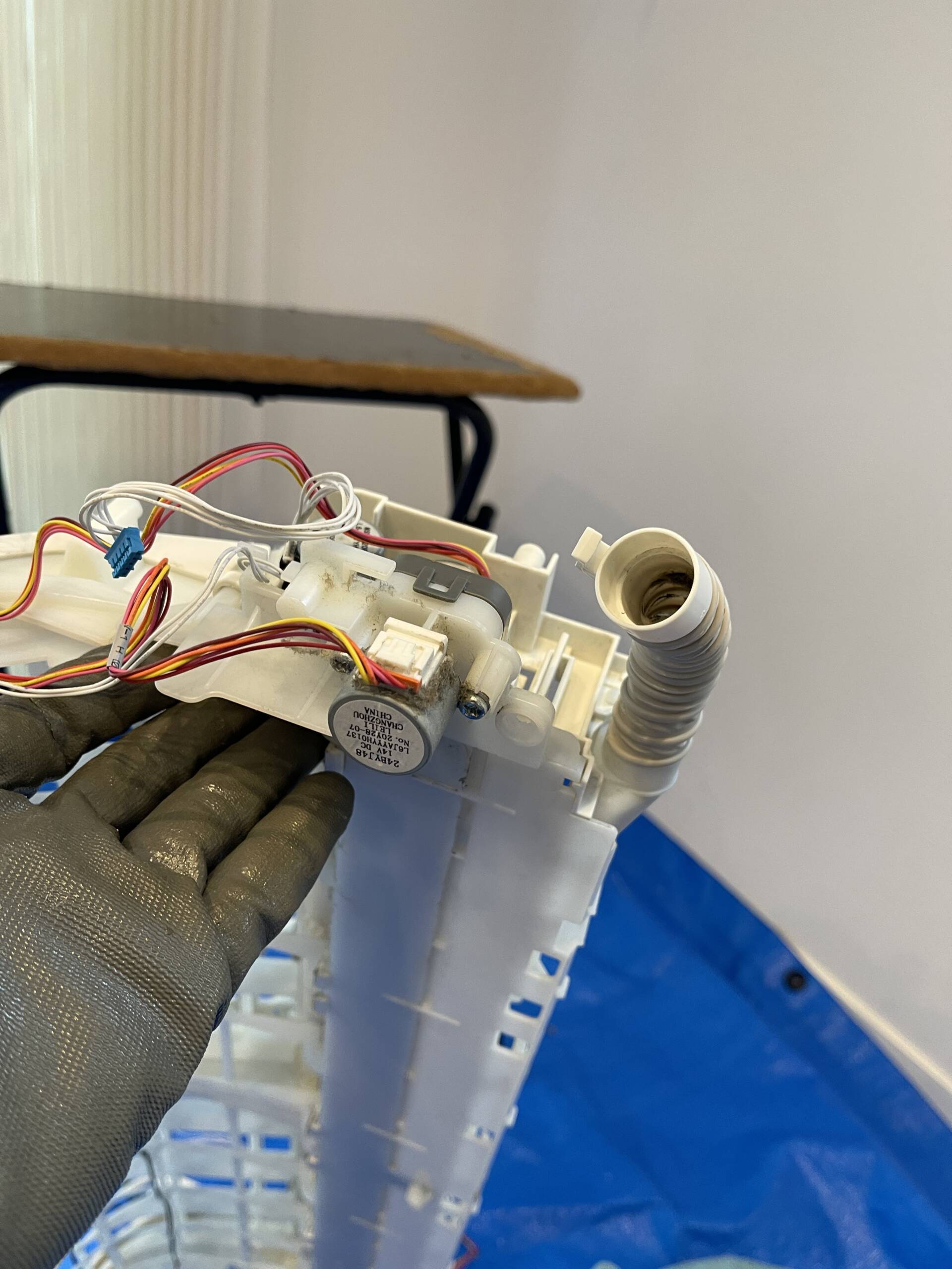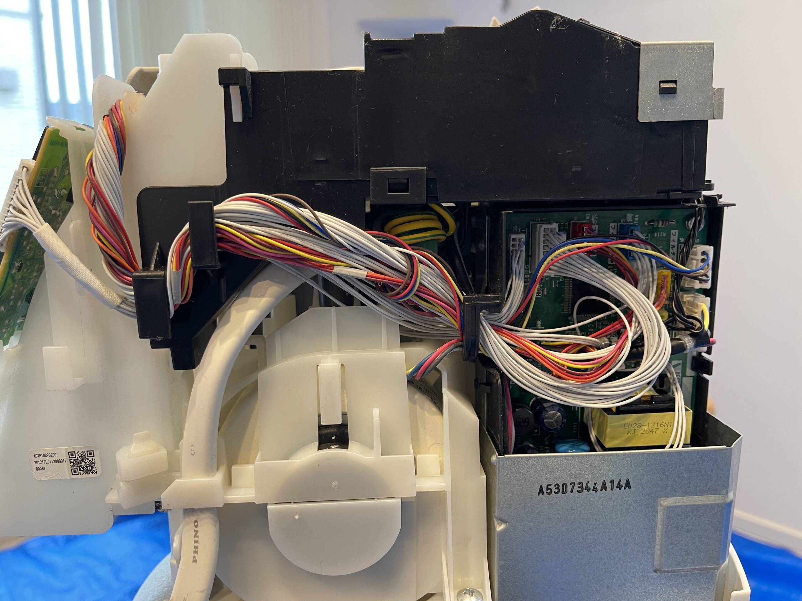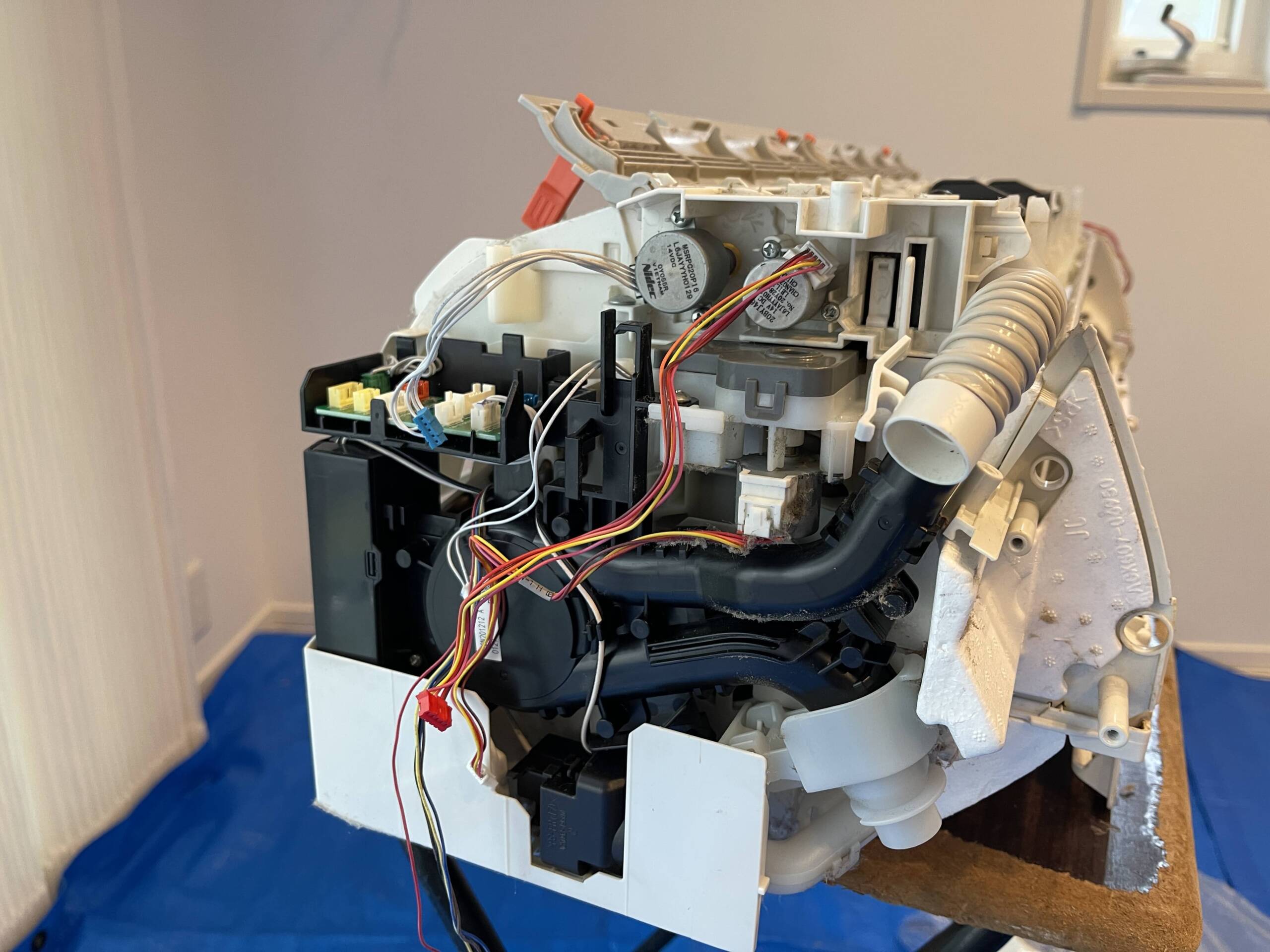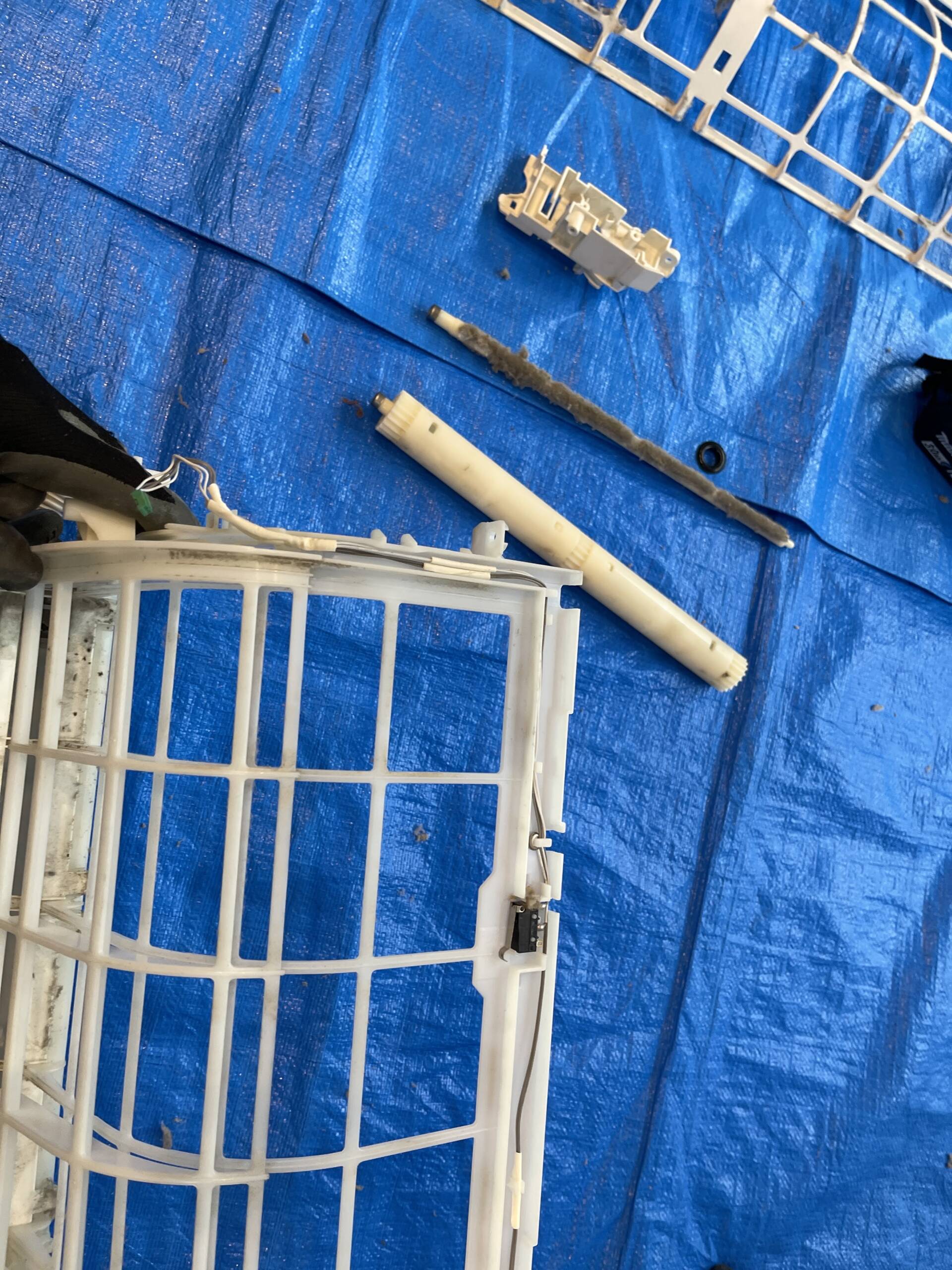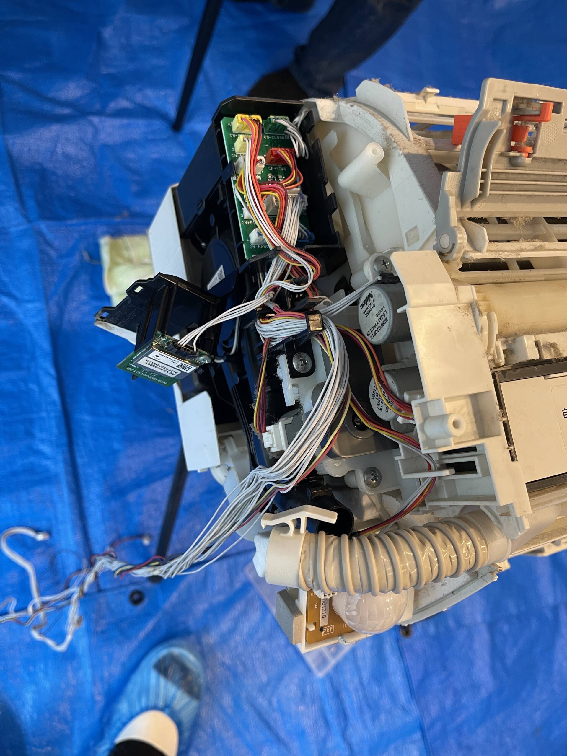 室内機の取り外しから、電装部品・送風ファン・熱交換器・ドレンパンまでを分解し、
