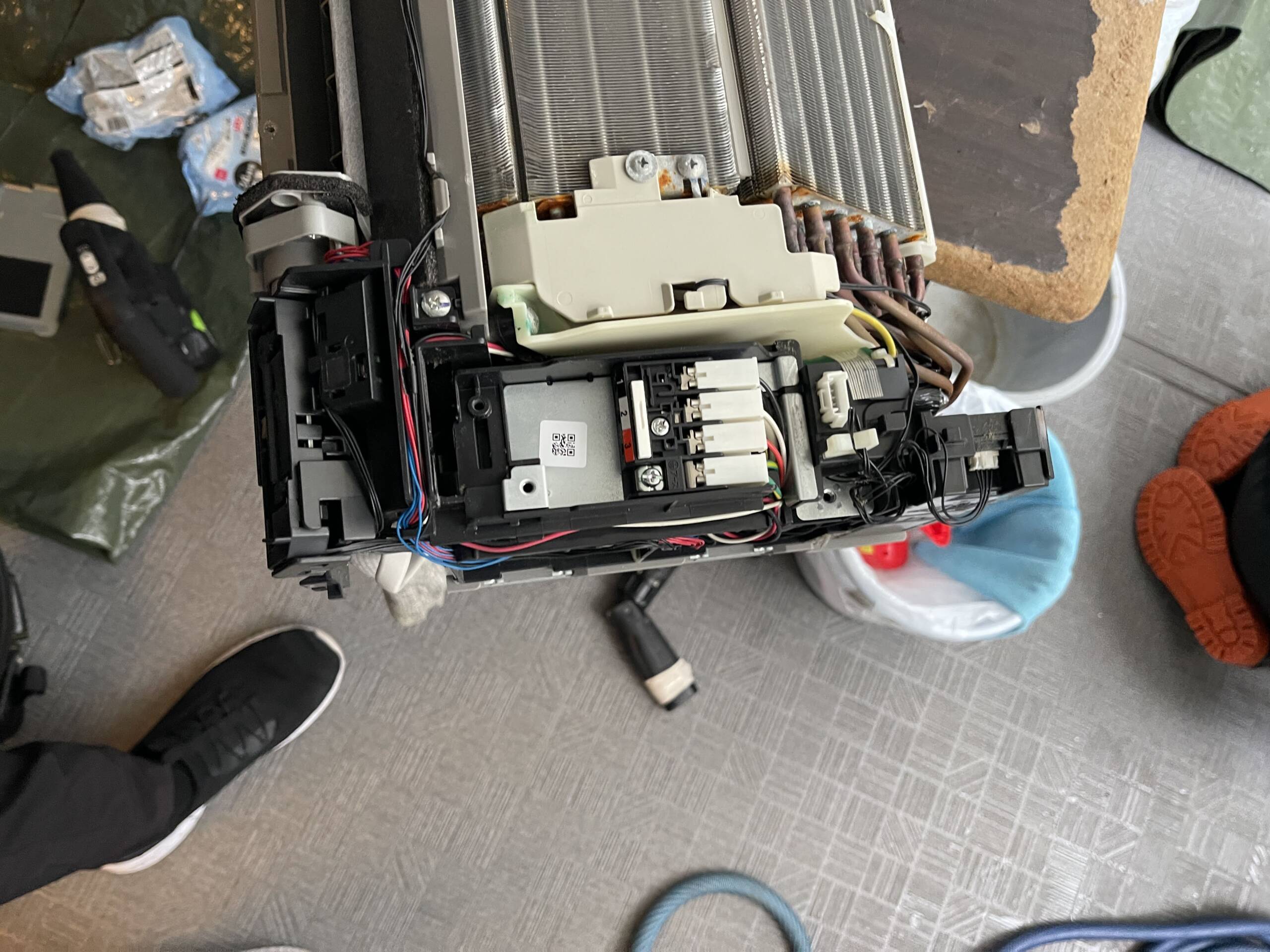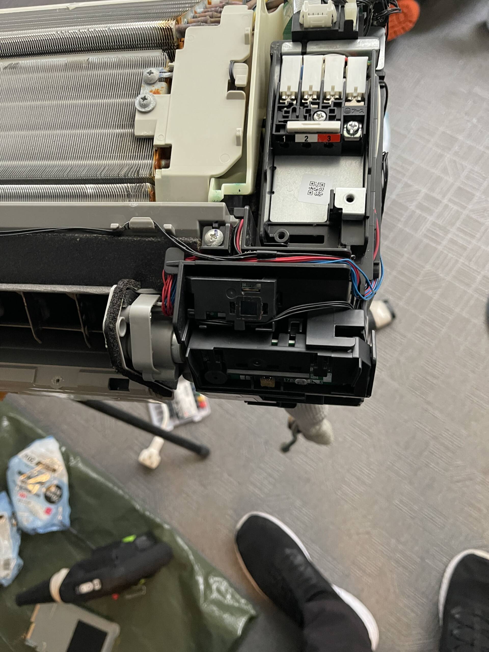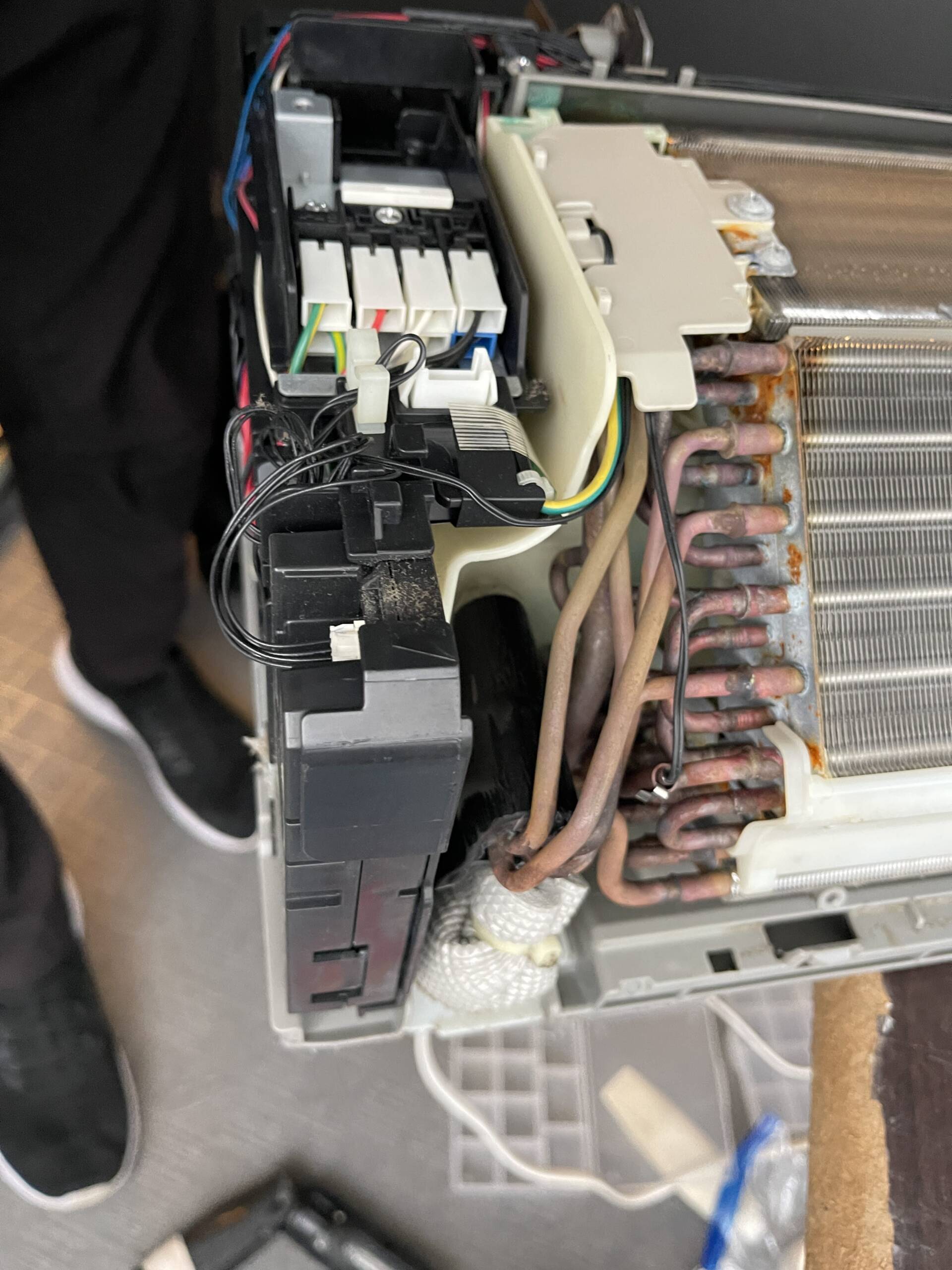- 電装部品・送風ファン・アルミフィン・ドレンパン・ケーシングまですべて分解する完全分解工程