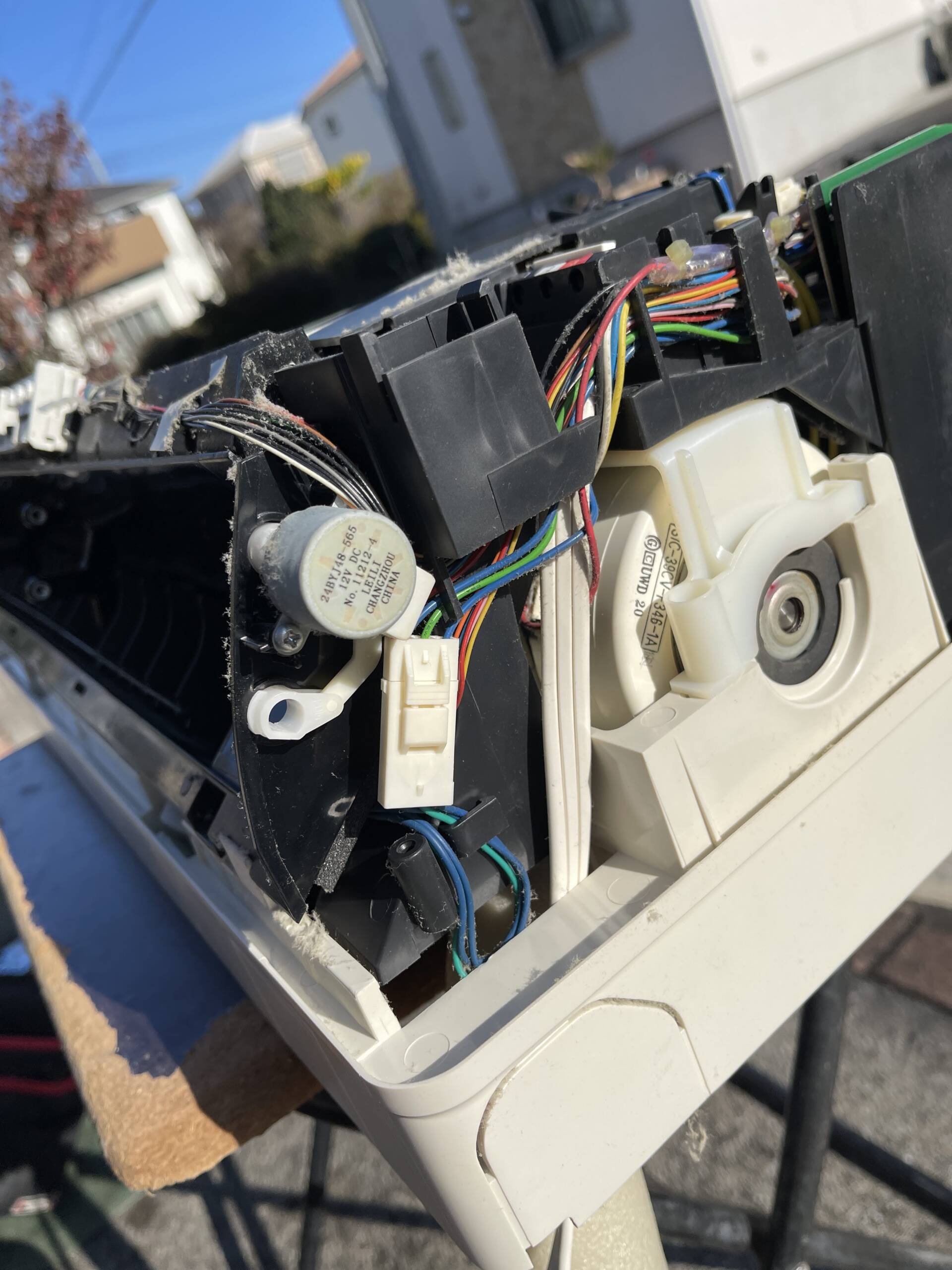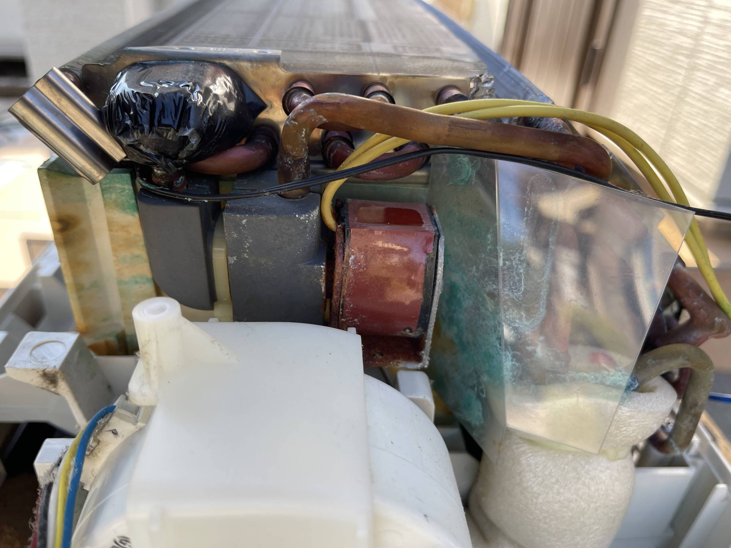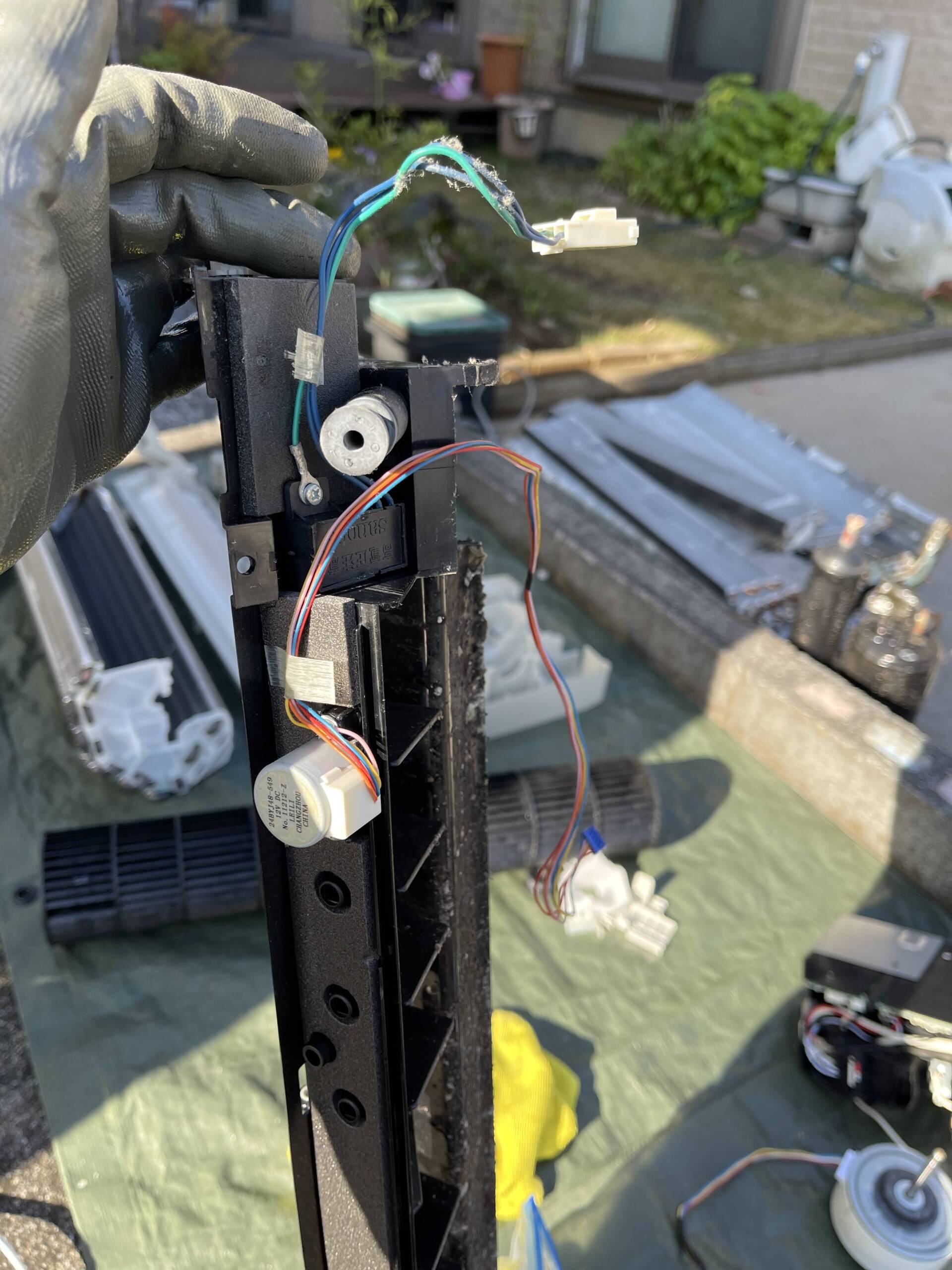 室内機の取り外しから、電装部品・送風ファン・熱交換器・ドレンパンまでを分解し、