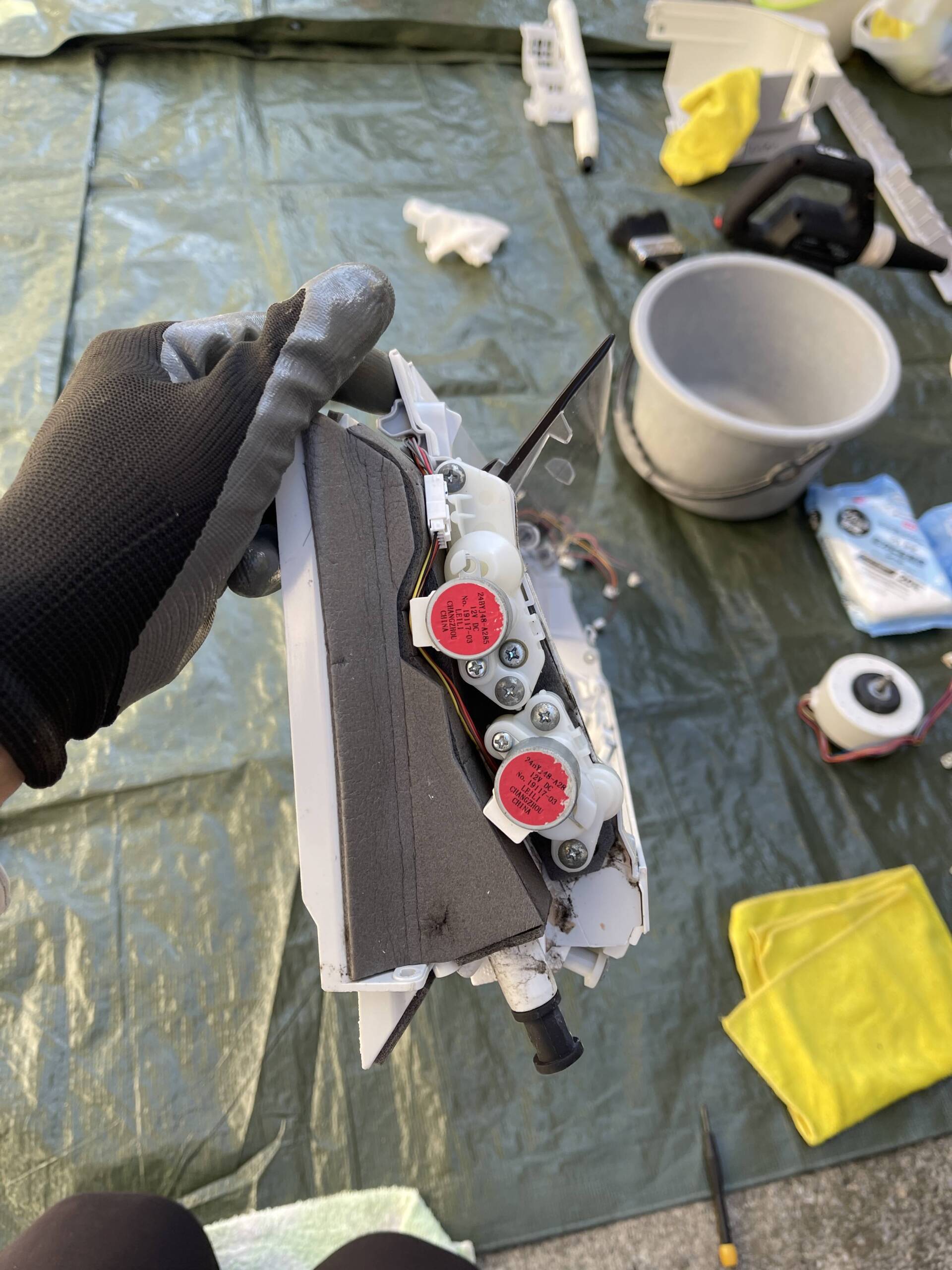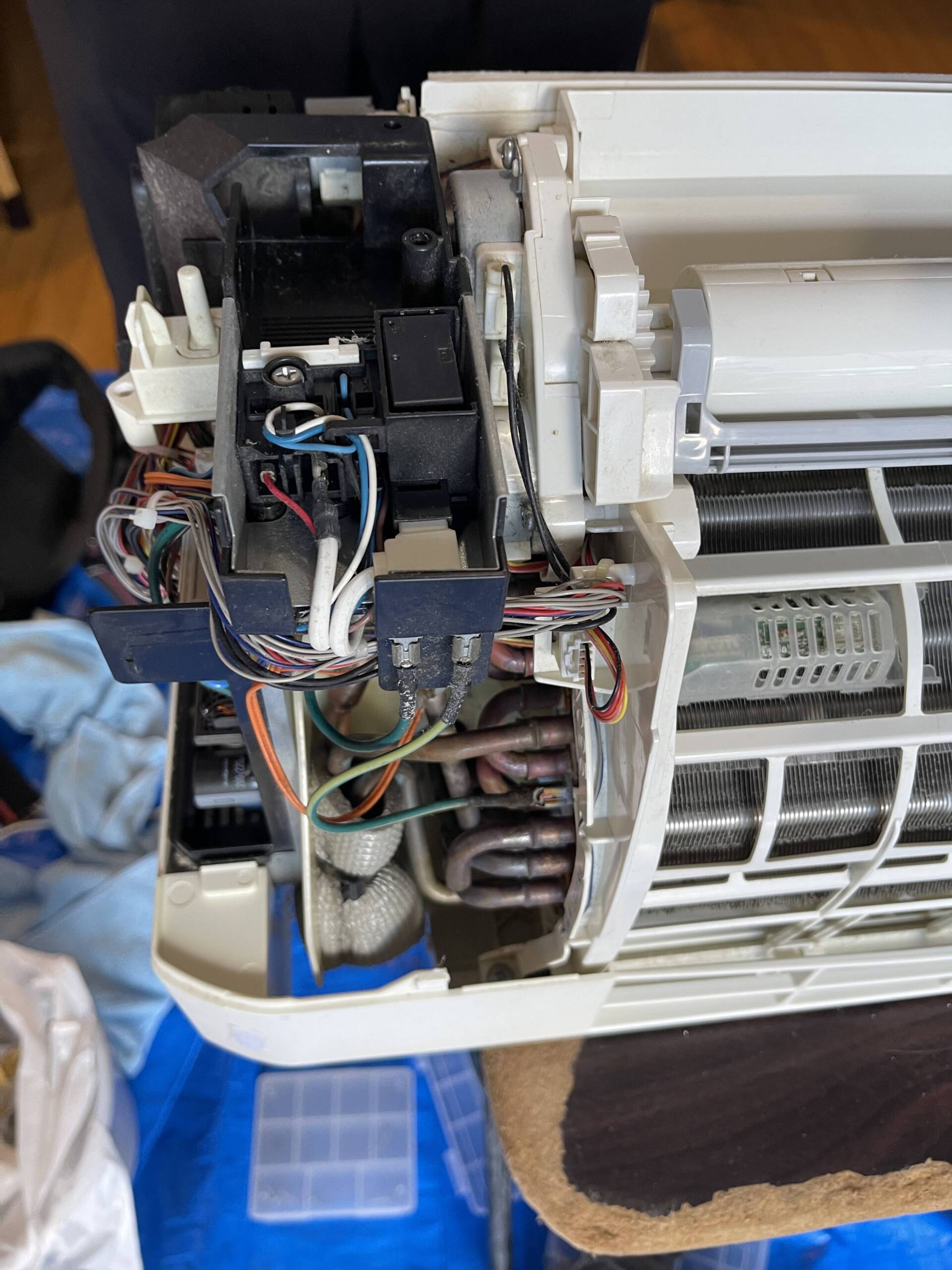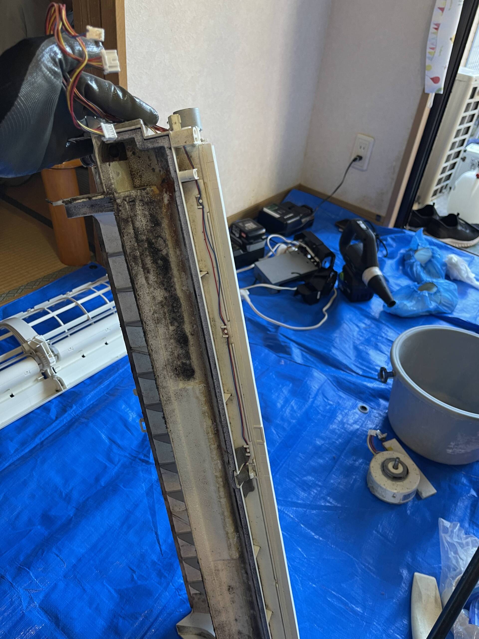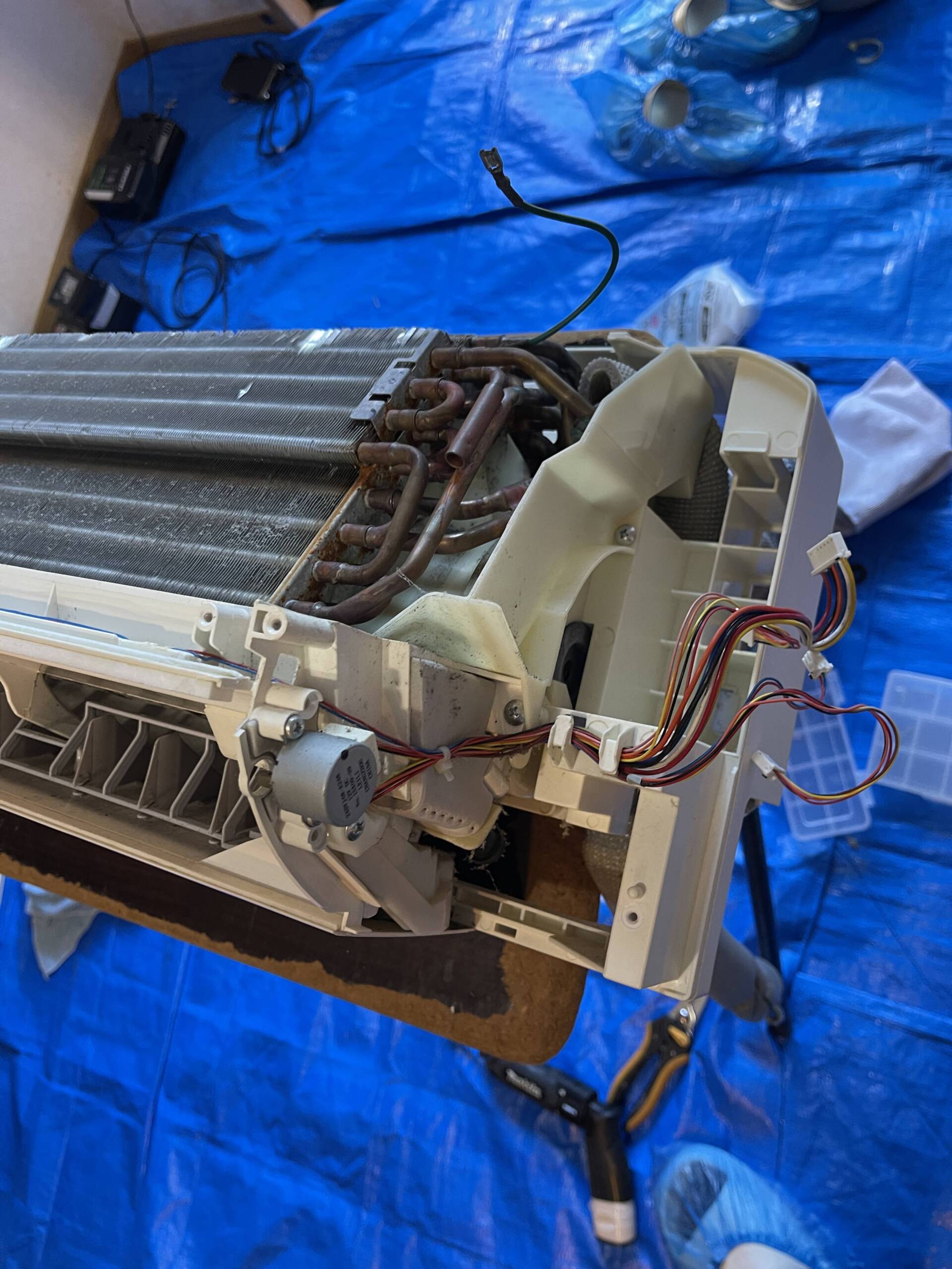 - 電装部品・送風ファン・アルミフィン・ドレンパンまでの完全分解
